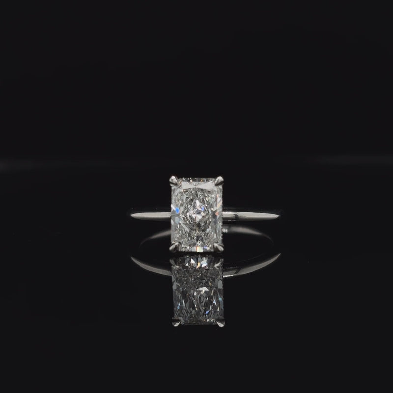 Platinum Radiant Lab Diamond Engagement Ring Total Lab Diamond Weight 1.74ct E-F Colour VS Clarity Radiant Centre Lab Diamond Weight 1.56ct F Colour VVS2 Clarity.