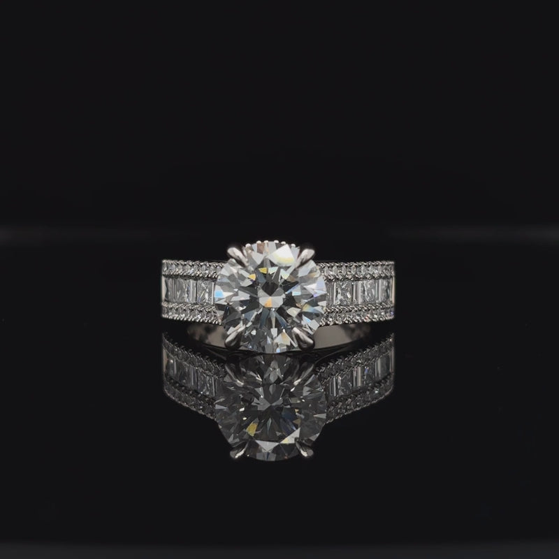 Round Multi Row Band Lab Diamond Engagement Ring (4.59cts Total, 3.06cts Centre)